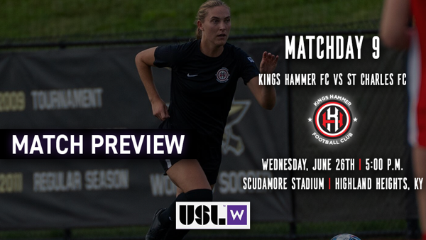 Highland Heights, KY (June 26th, 2024) – Kings Hammer FC’s USL W League team prepares to take on St Charles FC once again for their last home match of the season. Kickoff is set for 5pm at Scudamore Stadium. Fans are encouraged to join us in our “western” theme tonight and come out to cheer the ladies on from the stands. You can also watch the game via stream on Sports Engine Play.